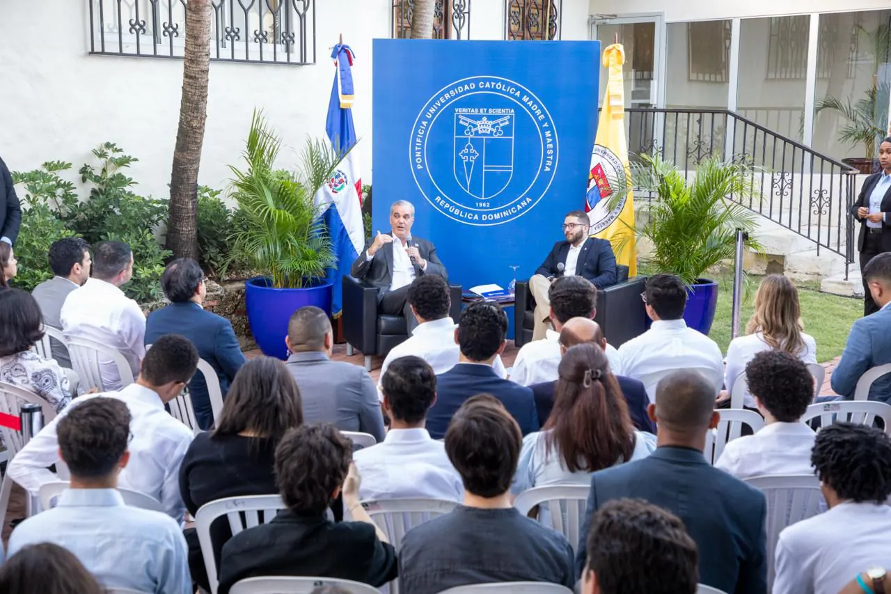 El presidente Luis Abinader participó en un conversatorio político con estudiantes universitarios, afianzando la cercanía y motivación hacia la población joven para que continúen desarrollándose con ahínco a nivel profesional y económico, recordando que la educación es una base fundamental para crear un futuro sólido y contribuir con el desarrollo del país.