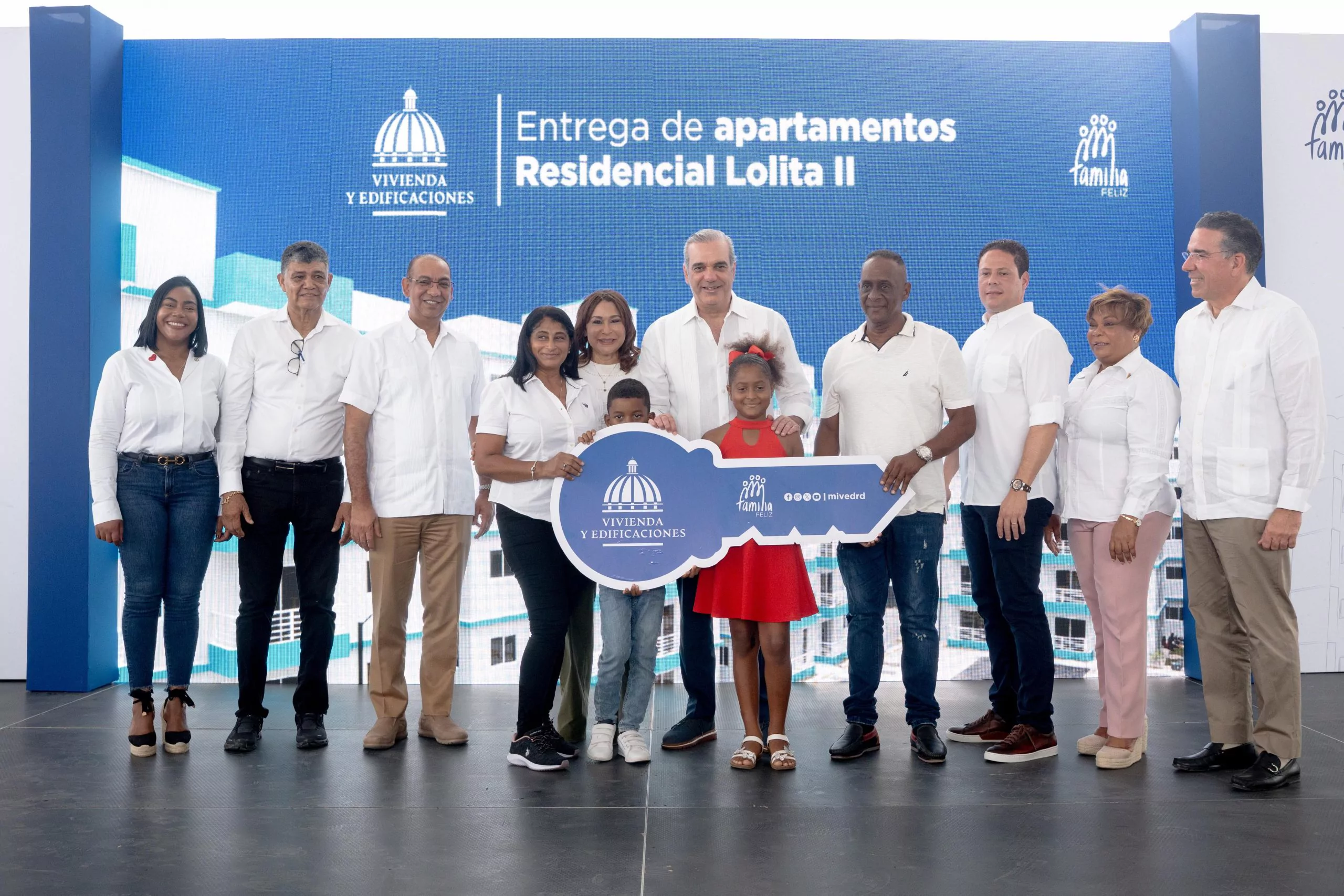 El presidente Luis Abinader y el ministro de Vivienda y Edificaciones, Carlos Bonilla, entregaron este sábado 140 nuevos apartamentos en Ciudad Hato Nuevo, Santo Domingo Oeste, como parte del Proyecto Residencial Lolita II del Plan Nacional de Viviendas Familia Feliz.