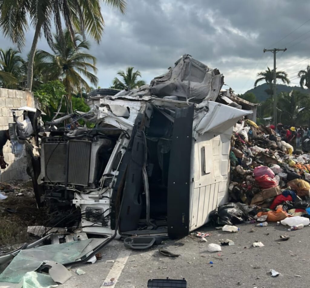 La víctima fue identificada como Misael Santana, de 25 años, residente en la zona y trabajador del sector hotelero. Según los reportes, el joven perdió la vida en el acto, luego de que quedara atrapado y aplastado por la estructura metálica del vehículo que conducía.
