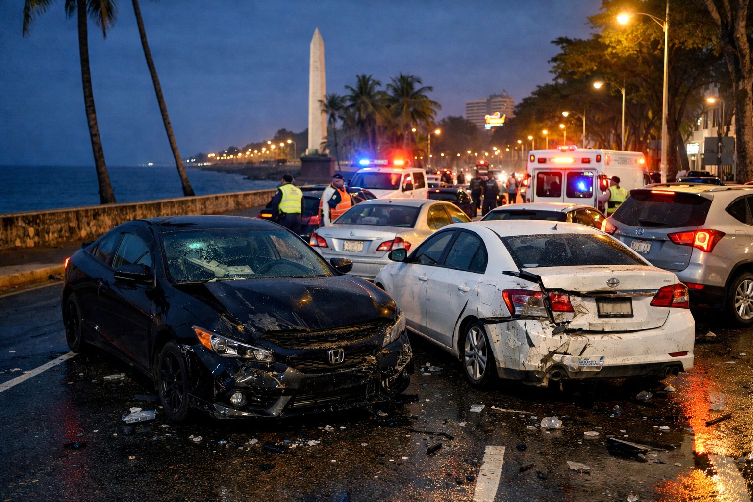 Un conductor perdió el control del vehículo que manejaba y provocó un choque múltiple que involucró a más de cinco automóviles que se encontraban detenidos en fila, en un hecho registrado la madrugada de este domingo en la avenida George Washington, en el Malecón de Santo Domingo.