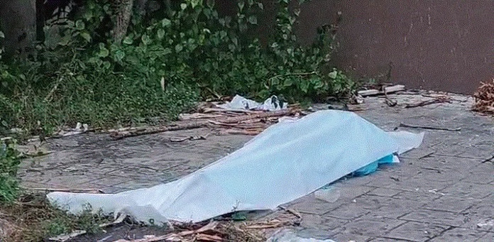 El cuerpo permanece en el suelo en una de las aceras de la calle Rafael Augusto Sánchez, a espera de un médico legista.