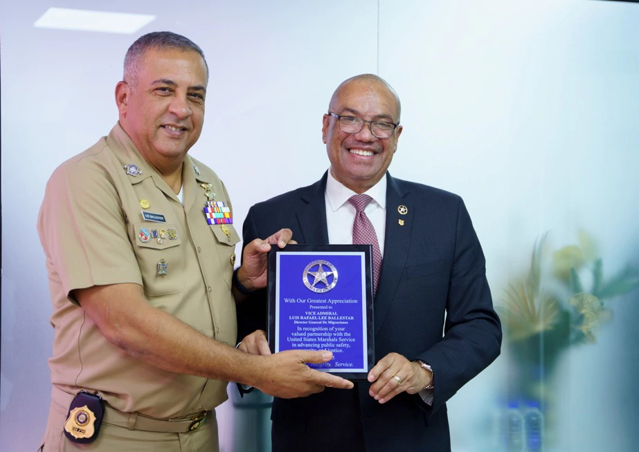 El Servicio de Marshals de Estados Unidos (USMS) entregó una placa de reconocimiento al Director General de Migración de República Dominicana, Luis Rafael Lee Ballester.