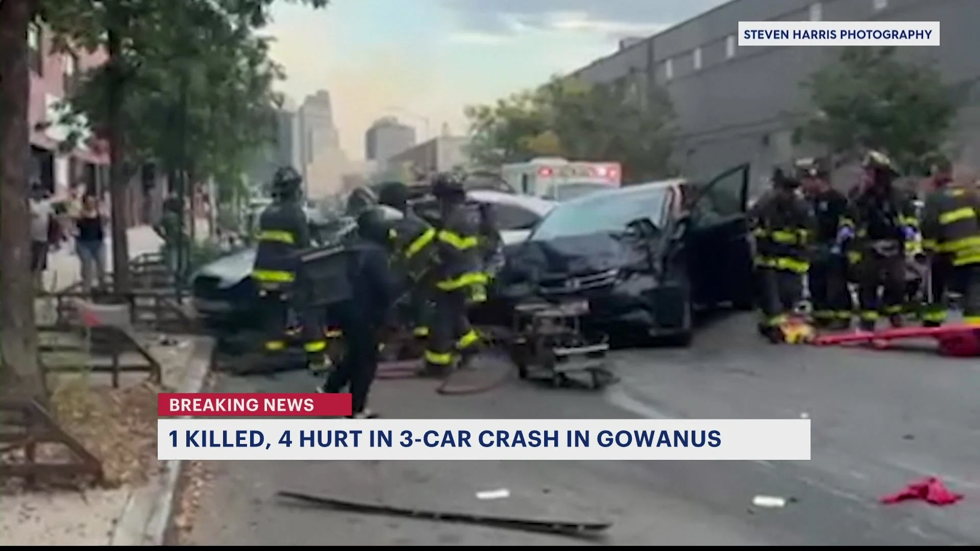 Un accidente mortal entre tres vehículos en Gowanus Nueva York dejó un hombre muerto y varios heridos después de que un automóvil se incendiara el domingo por la noche, informó la policía.