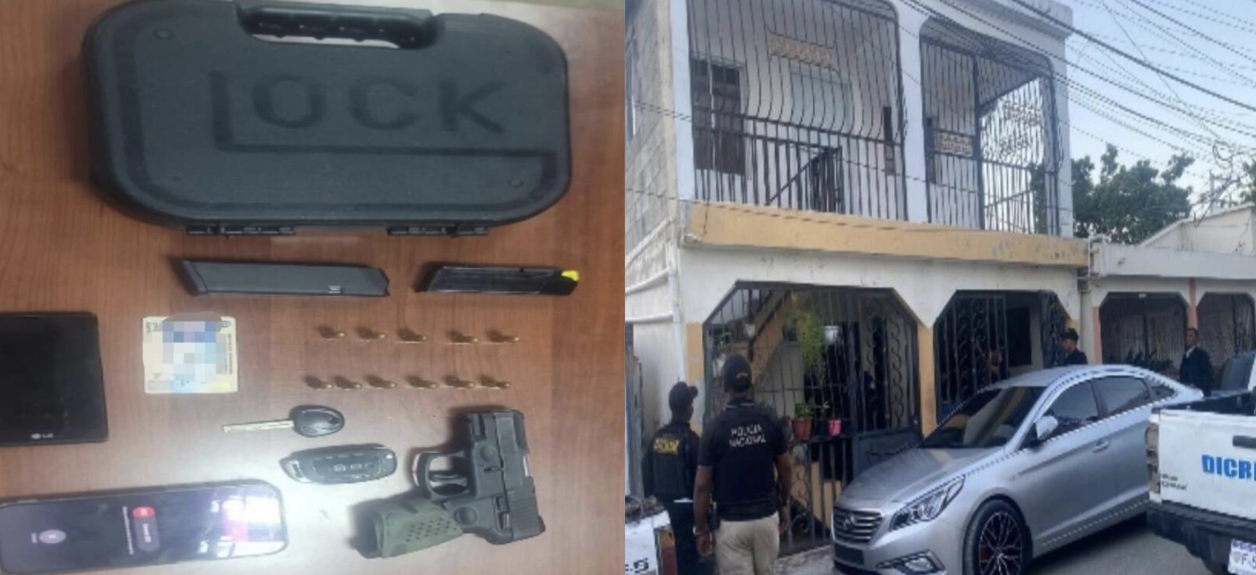 El reporte agrega, que durante el allanamiento, las autoridades ocuparon una pistola marca Taurus, calibre 9mm, con su cargador y 12 cápsulas, sin documentación legal. Además de un vehículo marca Hyundai, modelo Sonata LF, color gris, placa AA22098, el cual trasladaron al departamento correspondiente para fines de investigación.