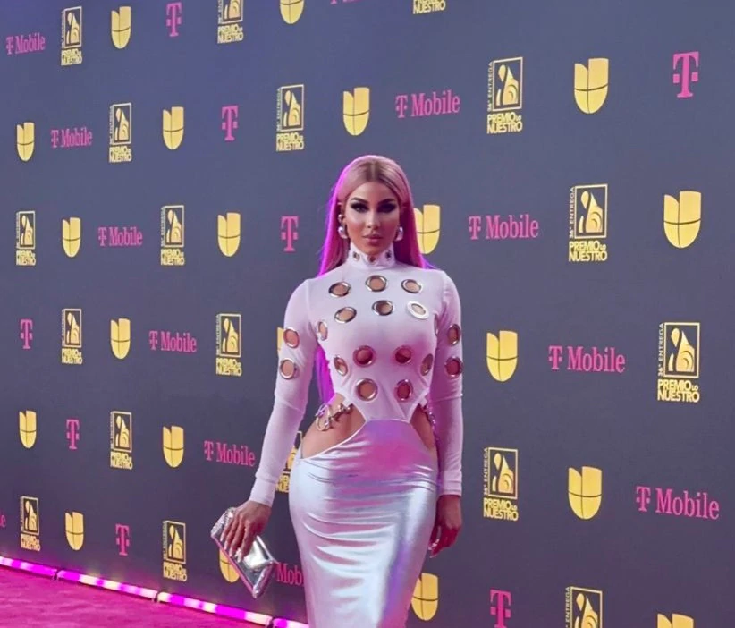 La cantante haitiana Sarodj llegó este jueves a la alfombra magenta de Premios Lo Nuestro luciendo un impactante vestido metálico agregando un look moderno , atrevido, de la mano del estilista y diseñador dominicano Keyther Estévez.