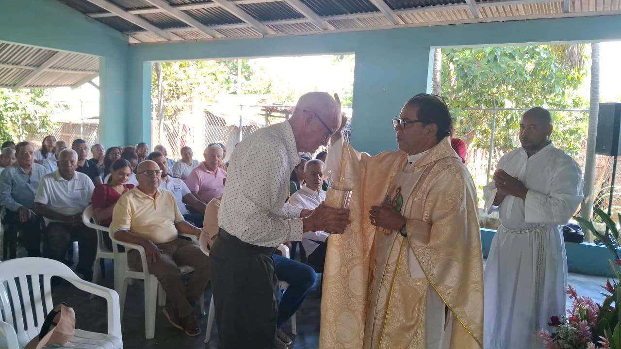 La actividad religiosa se llevó a cabo en el local de la Asociación de Regantes, ubicado en la comunidad de La Caída, en el tramo carretero Mao-Guayubín, donde asistieron numerosas personalidades ligadas al agro.
