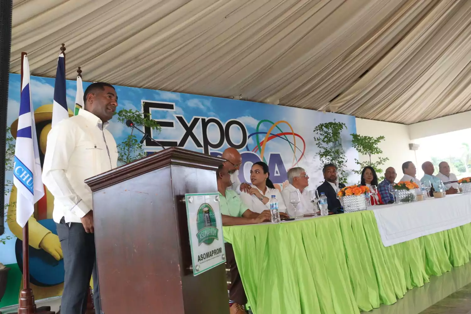 La mesa de honor de la presentación de los detalles de la feria estuvo compuesta por Santiago Álvarez, presidente del Plan Estratégico de Desarrollo de la Provincia Espaillat (PEDEPE); Amable Guzmán, presidente de la Asociación para el Desarrollo de la Provincia Espaillat (ADEPE); Heriberto González, presidente de la Cámara de Comercio y Producción de Espaillat; Nancy Santos, secretaria general de ASOMAPROM; y Narciso Cepín, presidente del Consejo de Administración.