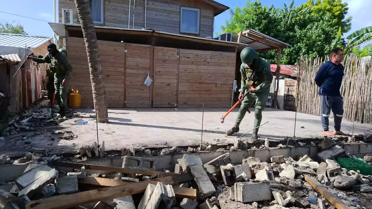 La pared o muro construido en block y cemento, se encontraba anexa a una vivienda de madera y zinc de dos niveles, propiedad de una persona identificada como JUAN CARLOS. El representante de los trabajos argumentó que posee los permisos ambientales para la construcción de la vivienda pero se verificó que no tiene ninguna autorización, por lo que bajo las órdenes del procurador actuante se procedió a eliminarla.