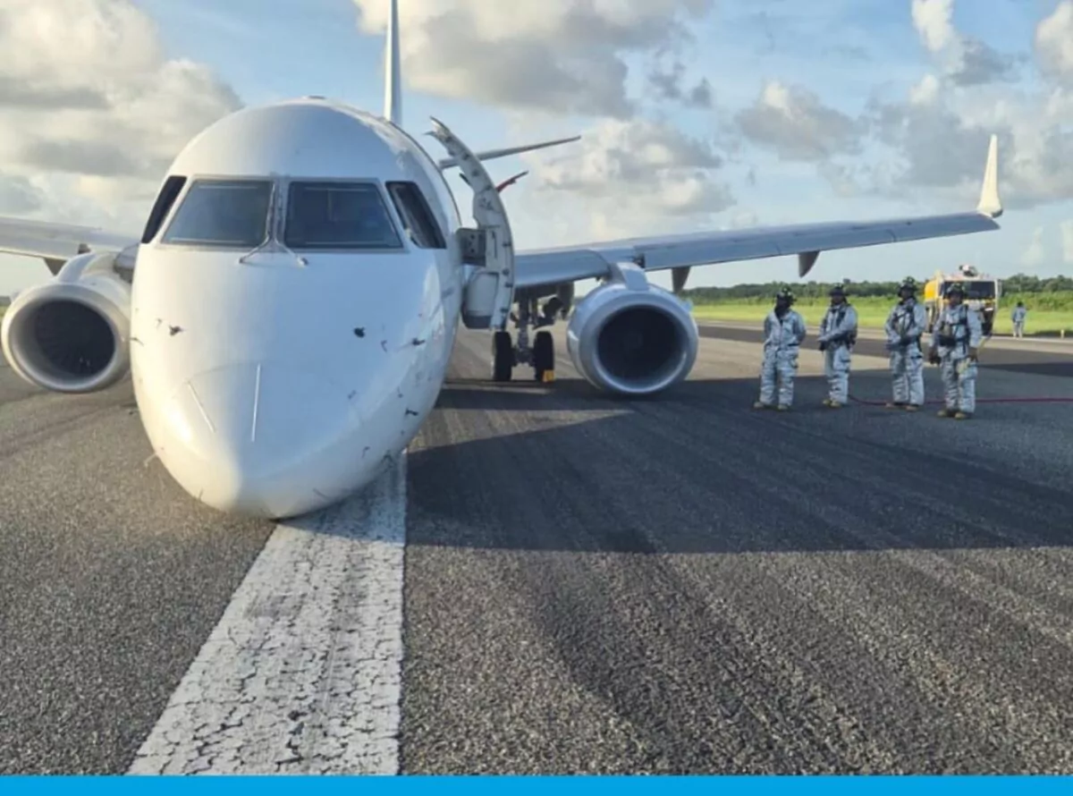 La aeronave, que no formaba parte de la línea de vuelos comerciales, se encontraba en un vuelo de prueba con siete ocupantes a bordo cuando presentó una falla técnica en su tren de aterrizaje delantero.