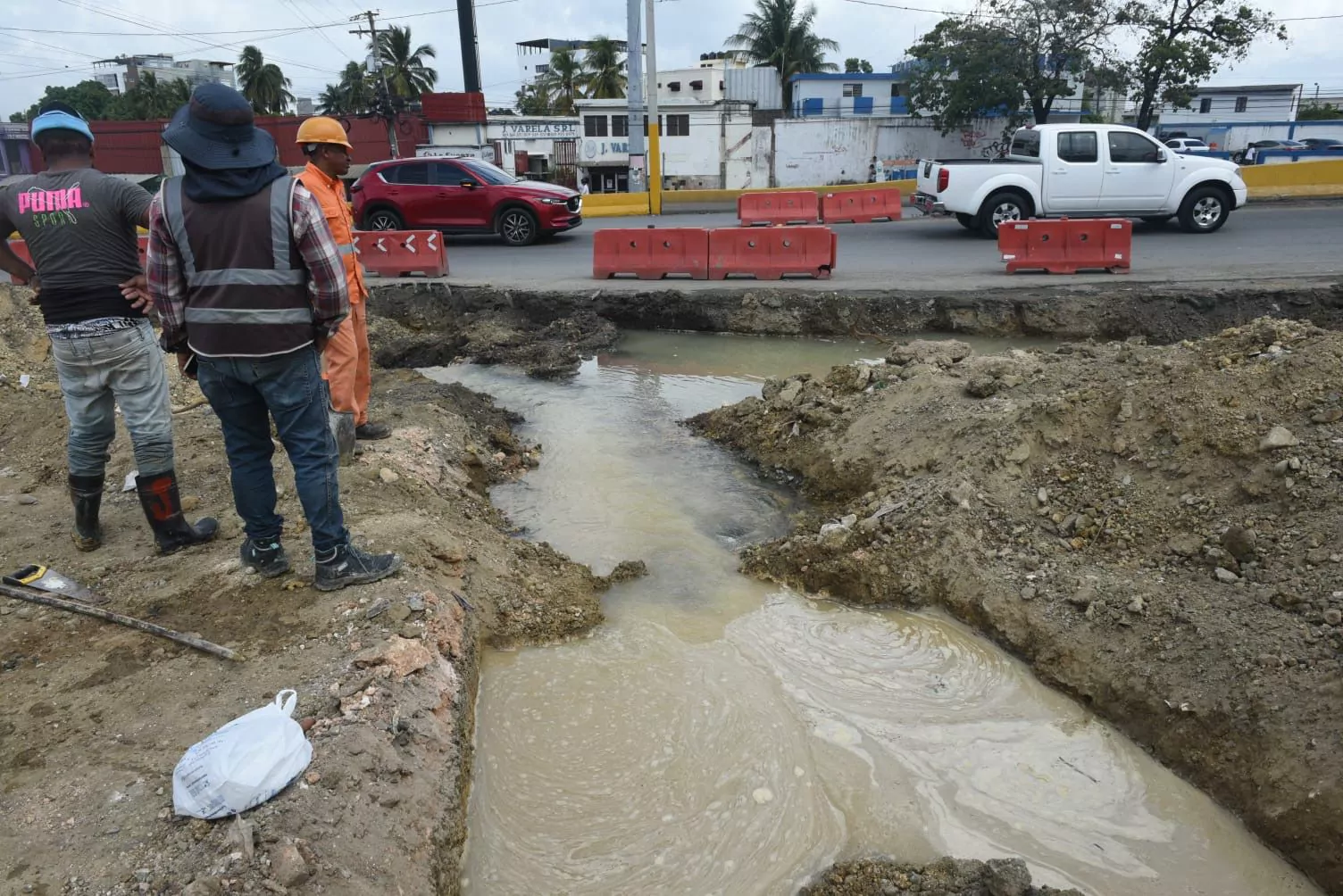 De manera paralela, varias brigadas trabajan en distintos puntos de Santo Domingo Este para corregir averías provocadas por la nueva presión en las tuberías tras la ampliación del Acueducto Oriental (Barrera de Salinidad), que ahora supera los 136 millones de galones diarios.
