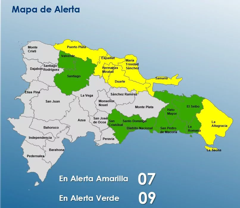 En virtud de esta situación, y conforme al artículo 2 del capítulo 1 de la Ley 147-02 sobre Gestión de Riesgos, el COE incrementó los niveles de alerta por posibles crecidas de ríos, arroyos y cañadas, así como inundaciones repentinas o urbanas. A partir de ahora, regirán los siguientes niveles de alerta:
