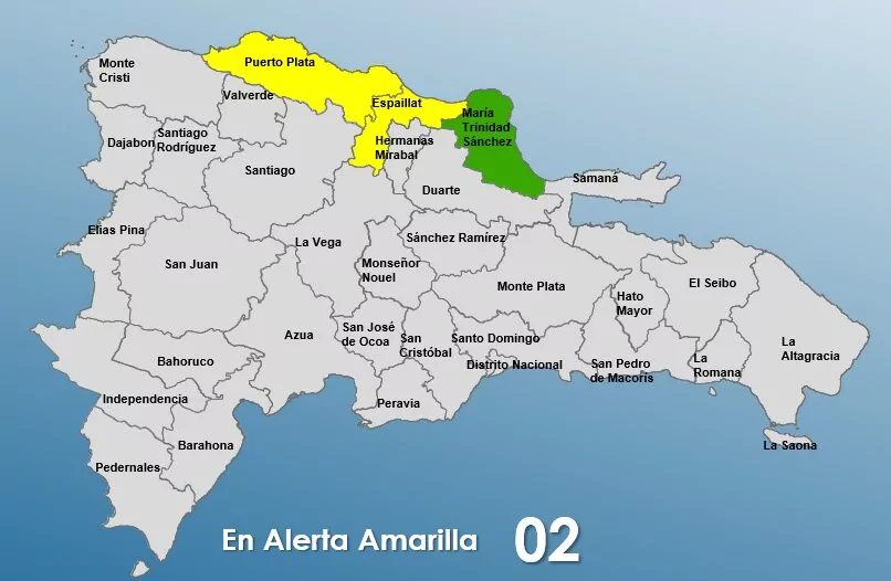 Las provincias que permanecen en alerta amarilla son Puerto Plata y Espaillat, mientras que María Trinidad Sánchez se encuentra en alerta verde.