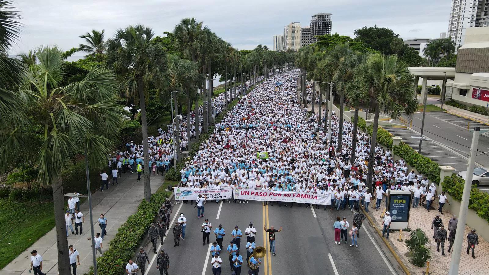 El Malecón de Santo Domingo fue testigo desde la Máximo Gómez hasta el Parque Eugenio María de Hostos, de la caminata anual Un paso por mi familia 2024, organizada este domingo por la iglesia Católica bajo el lema "Unidos en oración por una mejor nación".