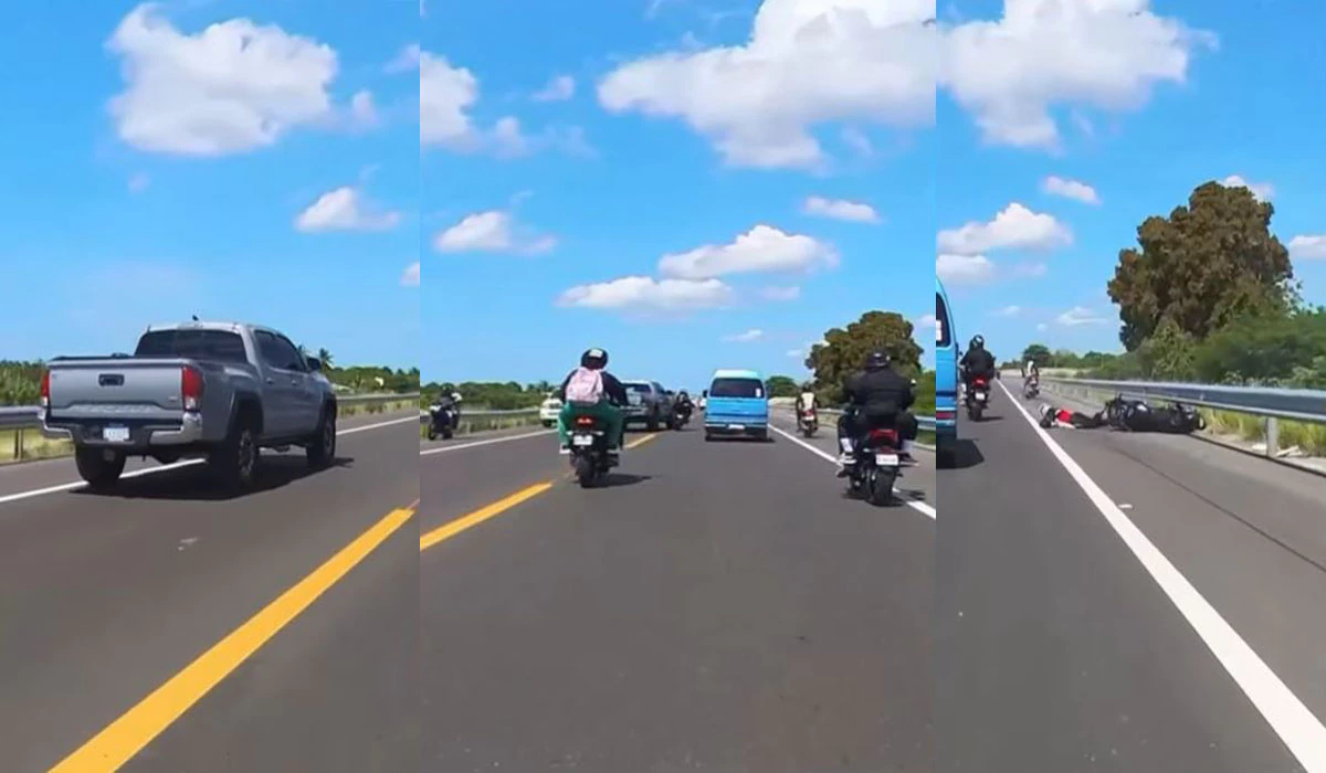 Relató con la imagen que tomó que el conductor de la Tacoma, para no chocar de frente con otro vehículo, tomó su carril desde la capital hacia el sur, impactando su motocicleta.