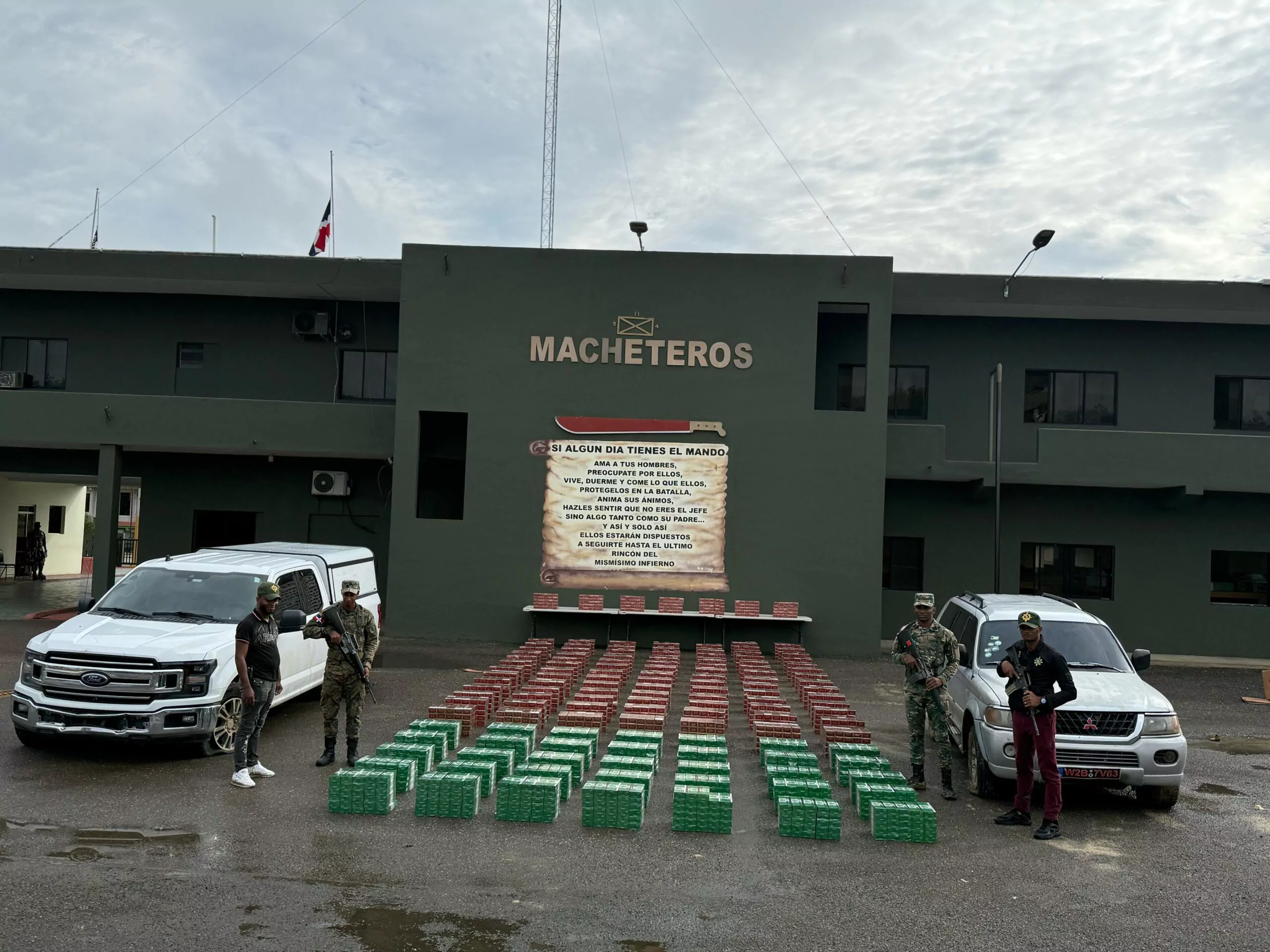 Miembros del Ejército de la República Dominicana (ERD) confiscaron 6,796,000 unidades de cigarrillos que habían sido introducidas al país de manera ilegal en una camioneta y una jeepeta en la localidad de Copey, en el municipio de Guayubín, provincia Montecristi.