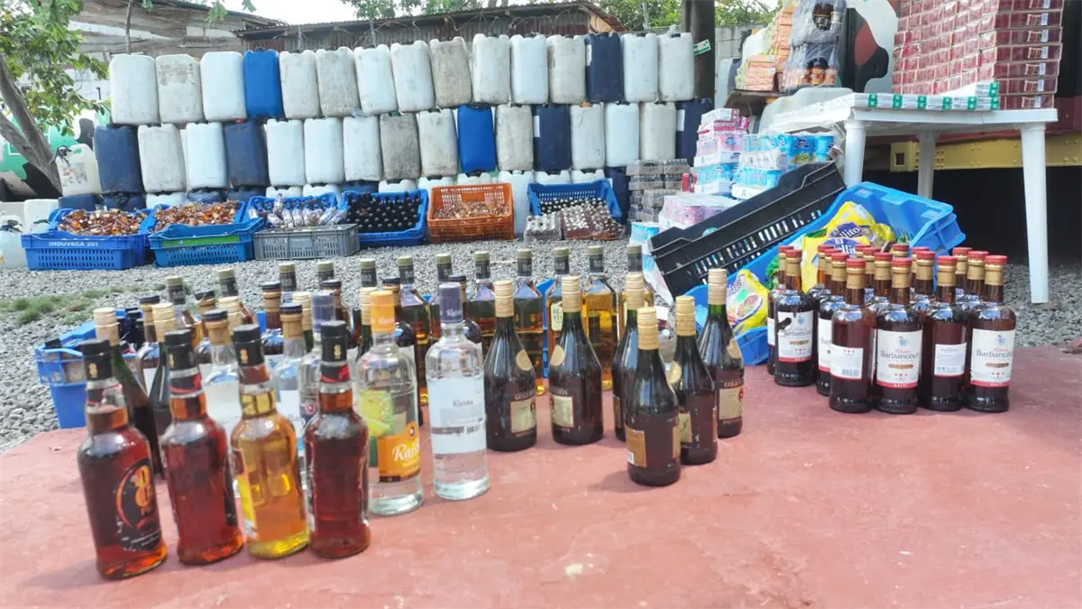 Miles de litros de alcohol adulterado decomisaron las autoridades, tras un operativo de allanamiento en un centro de acopio que abastecía de este tipo de mercancías ilícitas el mercado de la Pulga, en Santiago de los Caballeros, donde desarrollan sus actividades comerciales todos los miércoles y jueves.