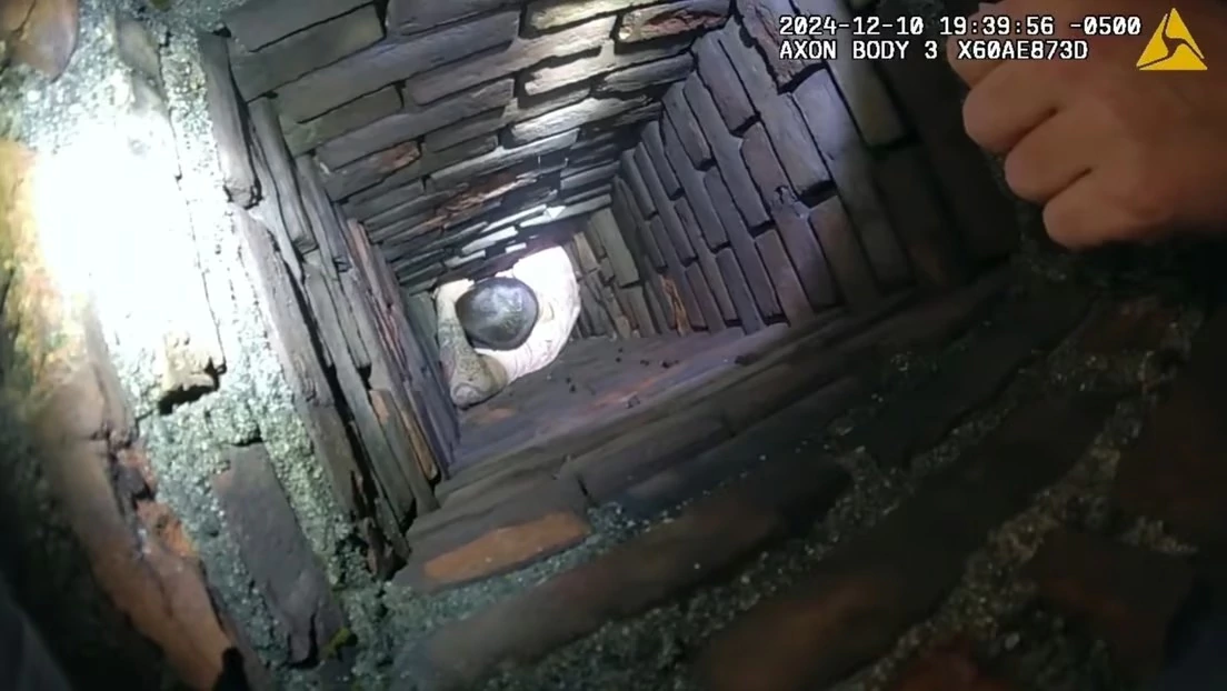 El delincuente, identificado como Robert Langlais, quedó atrapado y «necesitó la ayuda de los mismos detectives de los que antes huía». Con la colaboración de los bomberos fue rescatado. La Policía compartió las imágenes de la cámara corporal de uno de los agentes.