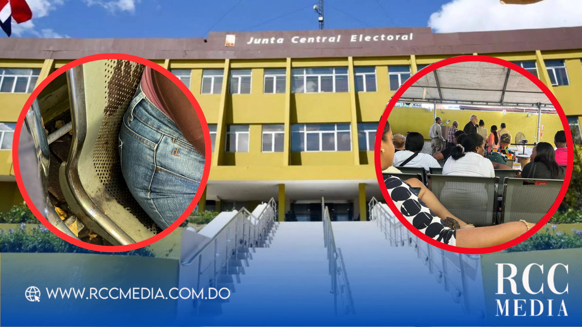 Sin "sistema", con asientos oxidados, suelos deteriorados y abanicos rotos, se encuentra la oficialía de la Junta Central Electoral en la Avenida 27 de Febrero, esquina Doctor Delgado, según denuncia una ciudadana.