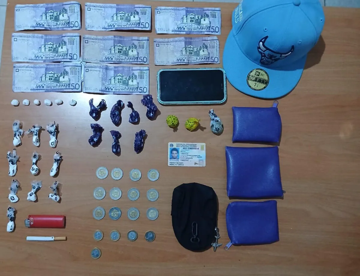 Durante la inspección, las autoridades le incautaron diez porciones de un polvo blanco, siete de un vegetal y otras siete de un material rocoso, además de un teléfono celular, dinero en efectivo y otras pertenencias.