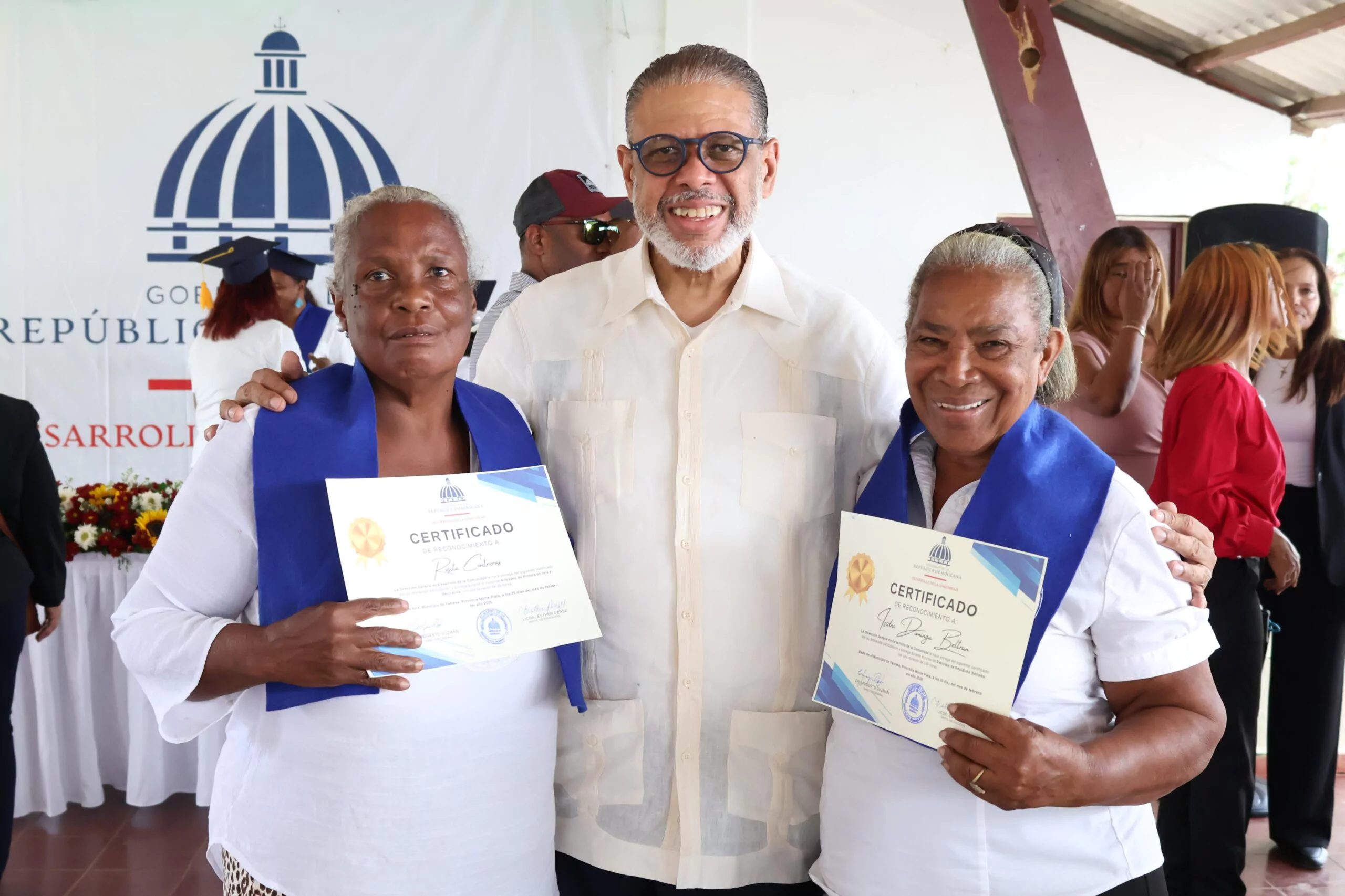 La Dirección General de Desarrollo de la Comunidad (DGDC), a través de su Departamento de Educación, celebró el acto de entrega de certificados de graduación a más de cien nuevos emprendedores, quienes culminaron exitosamente los cursos de Elaboración de Productos Artesanales de Cacao, Químicos y de Velones; Reciclaje y Pintura en Tela, realizados en el Centro de Desarrollo Integral Hispaniola (CDI), en el municipio Yamasá, provincia Monte Plata.