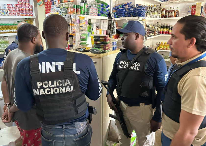 Miembros de la División Provincial de Inteligencia (DINTEL), en coordinación con el Ministerio Público, realizaron un allanamiento en el colmado El Moso, ubicado en el sector Pica Piedra, donde ocuparon un arma de fuego ilegal y dos computadoras utilizadas para simular juegos de máquinas tragamonedas.