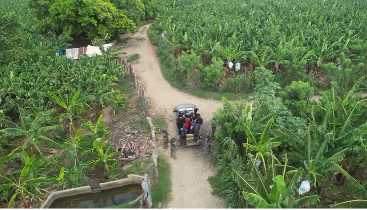 Los extranjeros indocumentados, entre ellos diez (10) hombres, seis (06) mujeres y un (01) menor de edad, se ocultaban en un platanal cuando fueron localizados por drones y detenidos por las patrullas terrestres integradas por miembros del ERD.