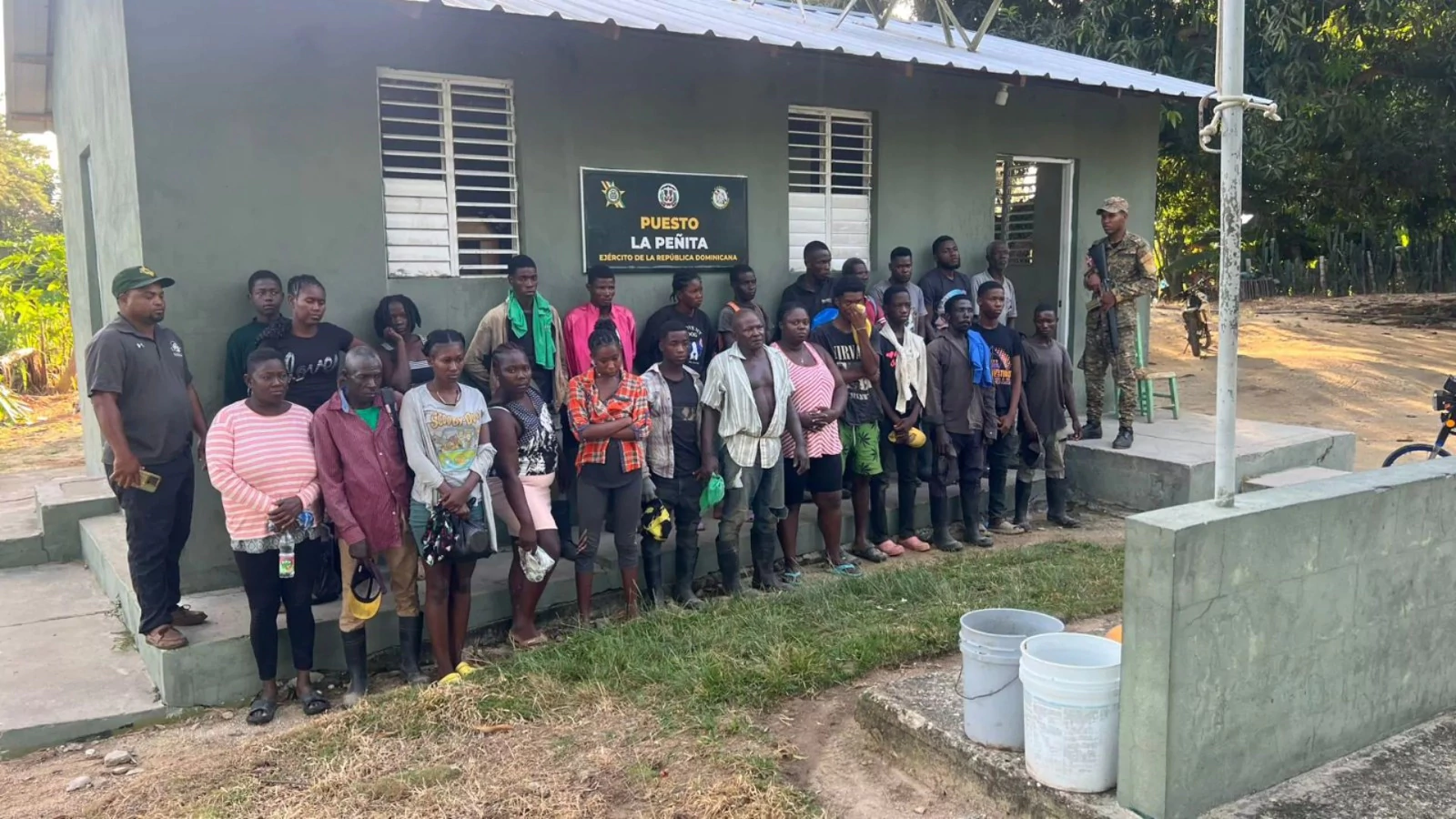 Los extranjeros en condición migratoria irregular, detenidos en Montecristi y Dajabón, fueron conducidos hacia la sede de la 4ta. Brigada de Infantería del ERD y ser entregados a la Dirección General de Migración.