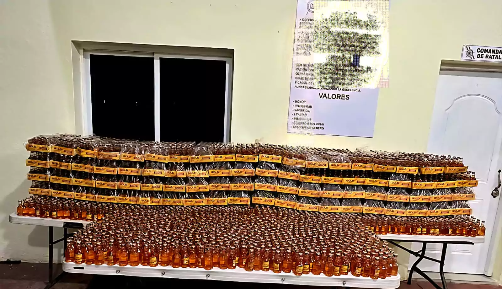 Al notar la presencia militar, los sujetos emprendieron la huida aprovechando la oscuridad de la noche, dejando abandonados a los animales, que transportaban un total de 257 paquetes de ron marca Gold, de 24 unidades cada uno, para un total de 6,168 botellas de procedencia extranjera.