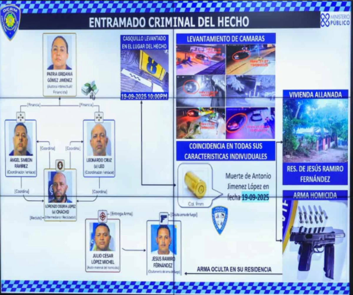 Por el crimen permanecen detenidas seis personas, entre ellas Patria Eridania Gómez Jiménez, esposa del empresario y señalada como autora intelectual del hecho, junto a Leonardo Cruz, Ángel Simeón Ramírez, Lorenzo Osoria López, Julio César López y Jesús Ramiro Fernández.