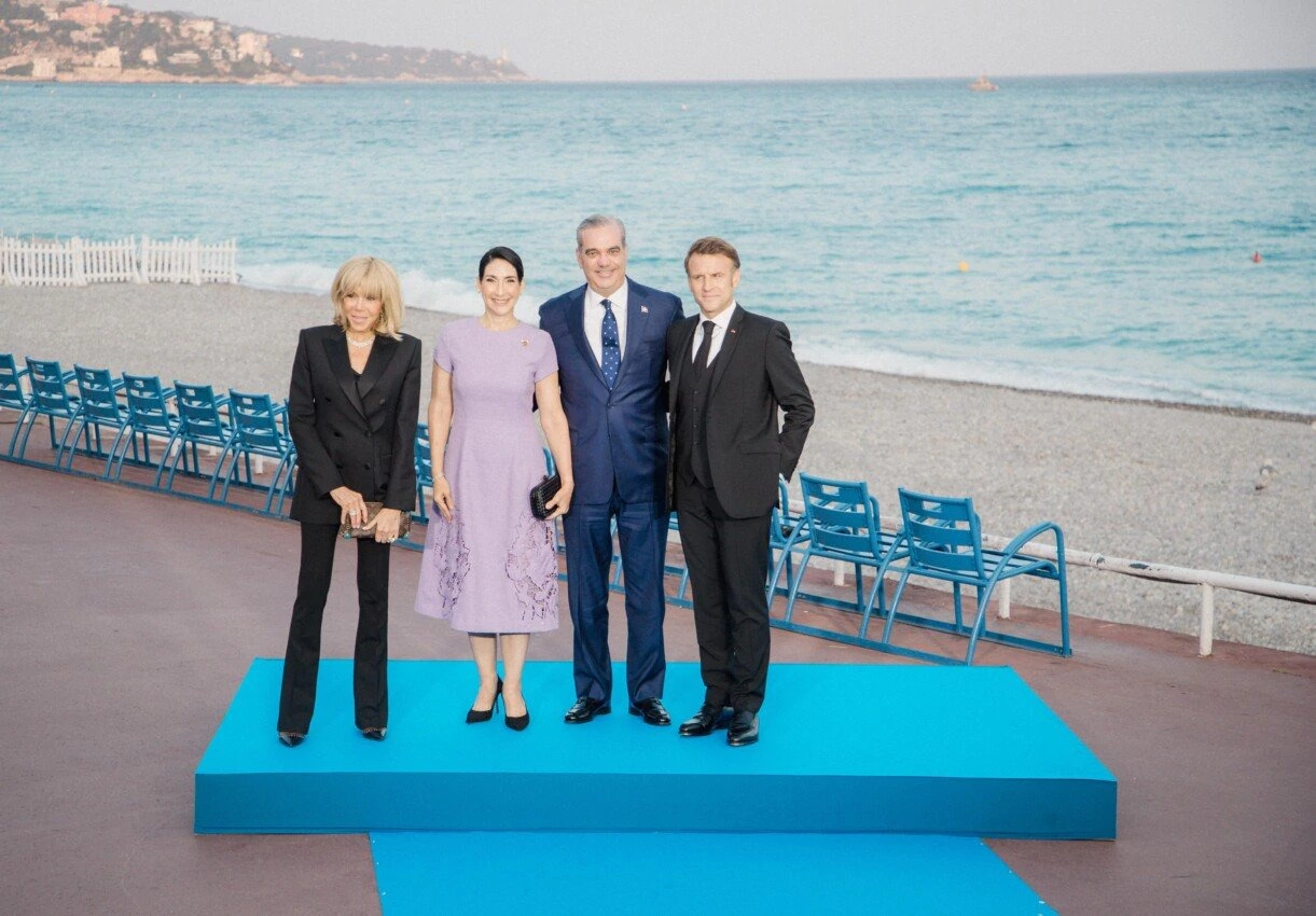 El presidente dominicano y y la primera dama, llegaron al Hotel Negresco, donde la pareja presidencial francesa recibió a los jefes de Estado y de Gobierno que participan en la Tercera Conferencia de las Naciones Unidas sobre el Océano, que se celebrará en Niza del 9 al 13 de junio.