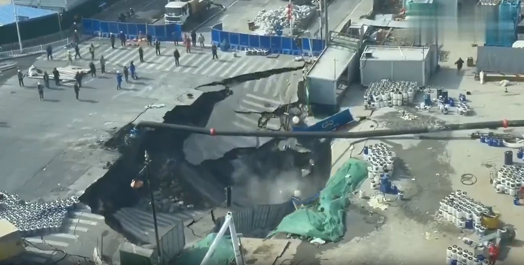 Un enorme socavón se abrió en una vía de Shanghái, China, y se tragó parte de la carretera, provocando el cierre de varias calles y afectaciones en el tránsito de la zona.