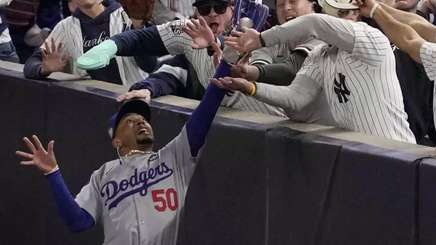Un fanático fue expulsado del Yankee Stadium ayer martes, durante el 4to juego de la Serie Mundial, después de arrebatarle la pelota del guante a Mookie Betts jardinero derecho de los Dodgers y que la mismoa fue bateada hacia la zona de foul.