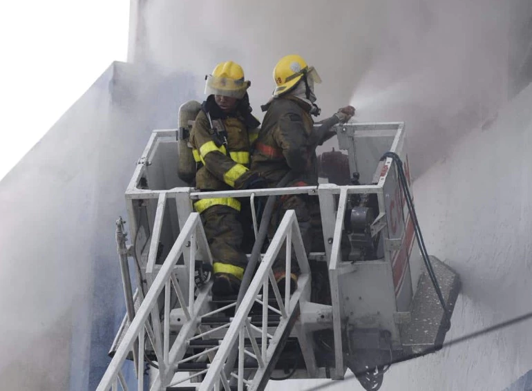 Mientras tanto, agentes de la Policía Nacional y personal de emergencia mantienen el área acordonada para garantizar la seguridad y permitir el trabajo de los bomberos.