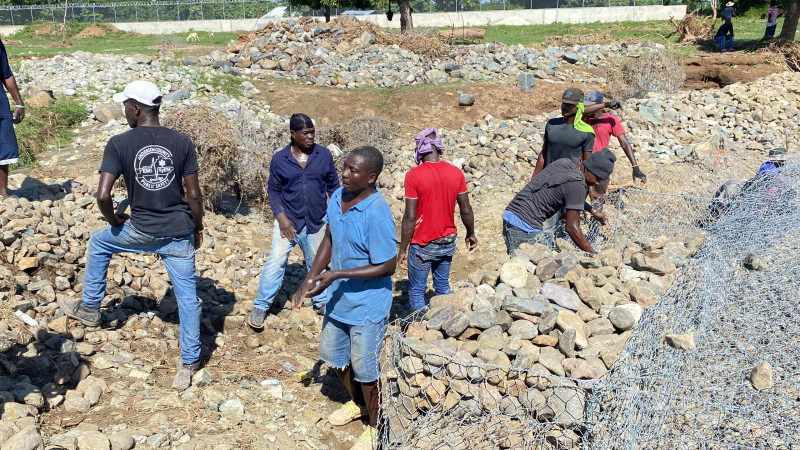 Tras los daños que sufrió el muro de gaviones del canal de Juana Méndez por el desbordamiento del río Masacre, debido a las fuertes lluvias, un grupo de civiles haitianos comenzaron ayer jueces con la reconstrucción de la infraestructura en la frontera que conecta ambos países.