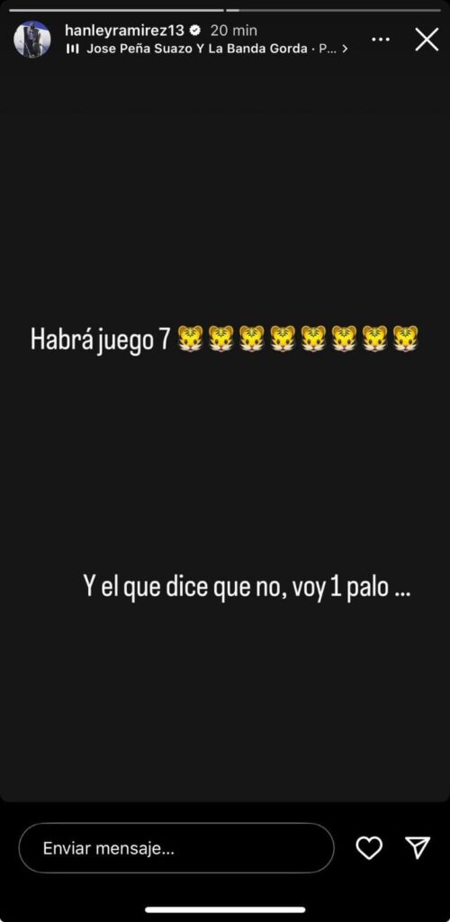 "Habrá juego siete… y el que dice que no, voy un palo", declaró Ramírez en una historia de Instagram este domingo por la tarde.