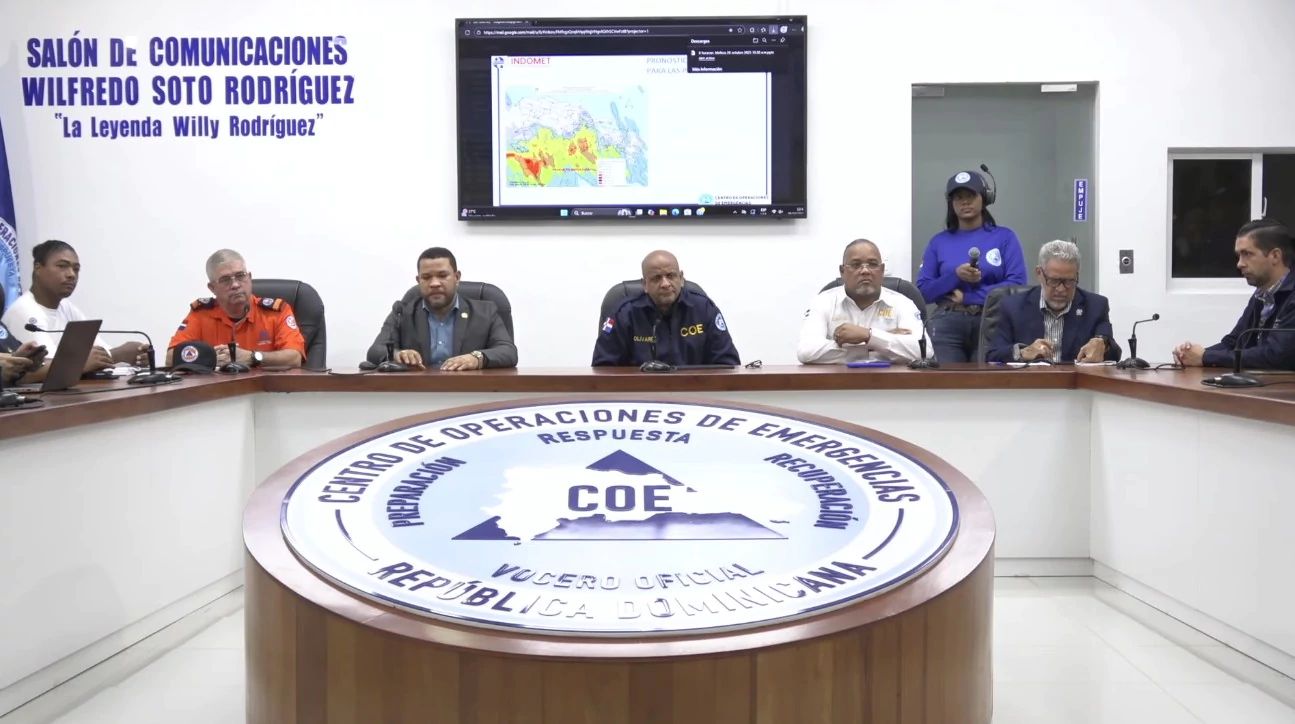 Durante la rueda de prensa más reciente llevada realizada en el Centro de Operaciones de Emergencias (COE), Rivera explicó que el sistema mantiene un amplio campo nuboso y un ojo bien definido, con bandas exteriores que seguirán incidiendo sobre el país. Estas condiciones provocarán lluvias moderadas a fuertes e intermitentes, especialmente en provincias del sur, suroeste y Gran Santo Domingo.