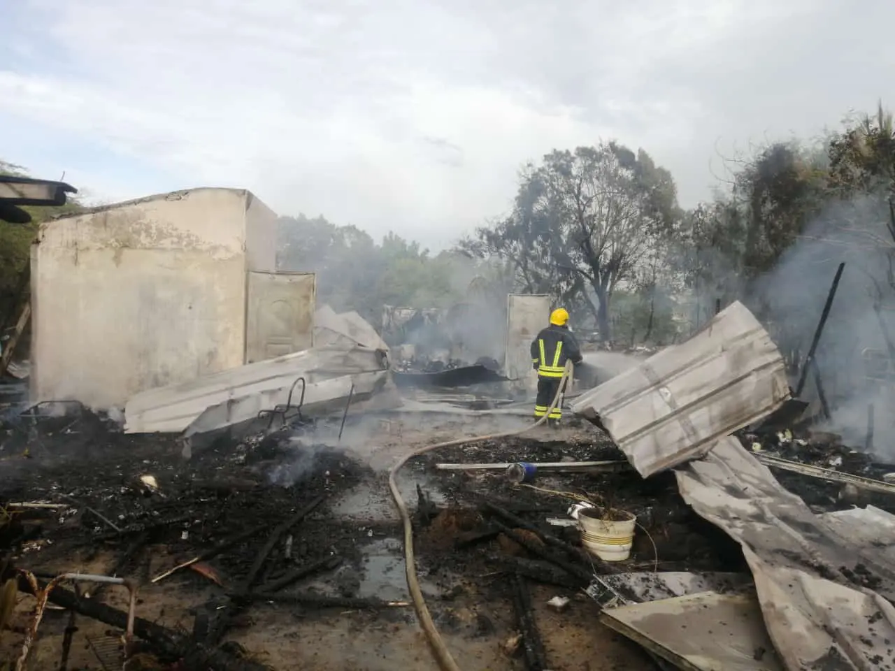 Aunque los bomberos de Montecristi llegaron al lugar para combatir el fuego, no pudieron salvar la vivienda, que quedó convertida en escombros.