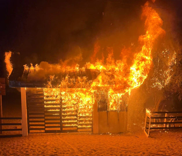 Un incendio destruyó la caseta situada en la entrada principal de Las Dunas de Baní, en el sector Las Salinas, durante la madrugada de este sábado, de acuerdo con informes preliminares de las autoridades.