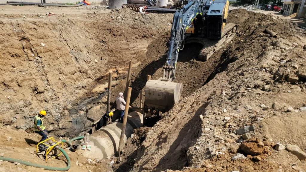 Durante una inspección realizada en la zona de la obra de toma, ubicada en el sector La Aduana, a orillas del río Masacre o Dajabón, Caba Romano supervisó las labores de equipos, maquinarias y personal técnico, donde actualmente se ejecuta el soterrado de alcantarillas de cemento para garantizar un flujo constante y seguro de agua.