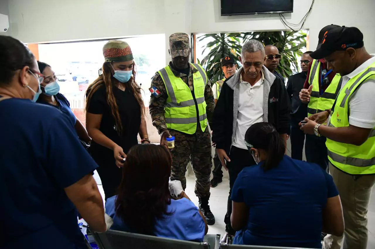 La mañana de este lunes, el Intrant realiza un operativo sorpresa de pruebas antidoping a choferes del transporte colectivo en el kilómetro 9 de la Autopista Duarte.