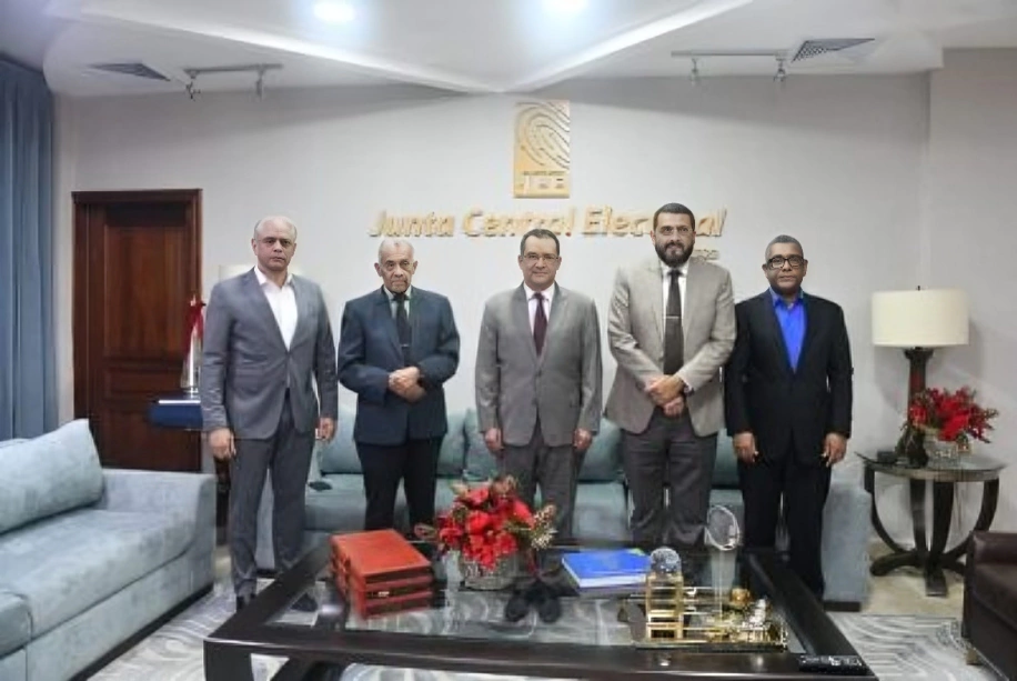 La reunión estuvo encabezada por el presidente del organismo, Román Jáquez Liranzo, junto a los directores de Cedulación, Américo Rodríguez, y de Informática, Johny Rivera.