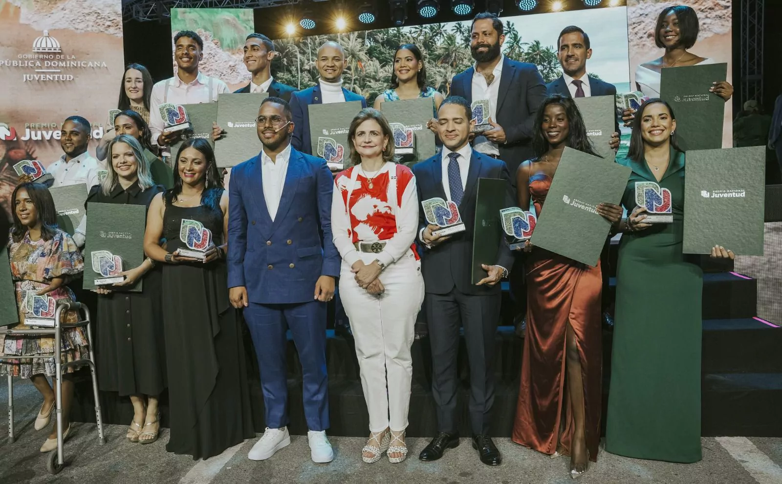 El Ministerio de la Juventud enalteció el talento de 15 jóvenes en el área de las ciencias, las artes, política, religión, el deporte, la agricultura, la empresa, educación y la preservación del medio ambiente en el vigésimo octavo Premio Nacional de la Juventud, por primera vez en los Jardines del Gran Teatro del Cibao.