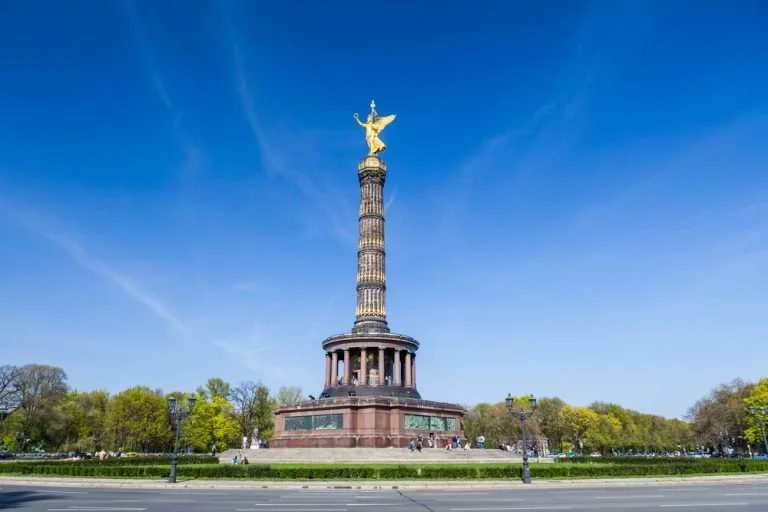 Originalmente un símbolo de militarismo, la columna rematada en una estatua dorada de la diosa Victoria -con la que suma 67 metros de altura- comenzó a construirse en 1864, tras la victoria prusiana y austríaca sobre Dinamarca en la Guerra de los Ducados.