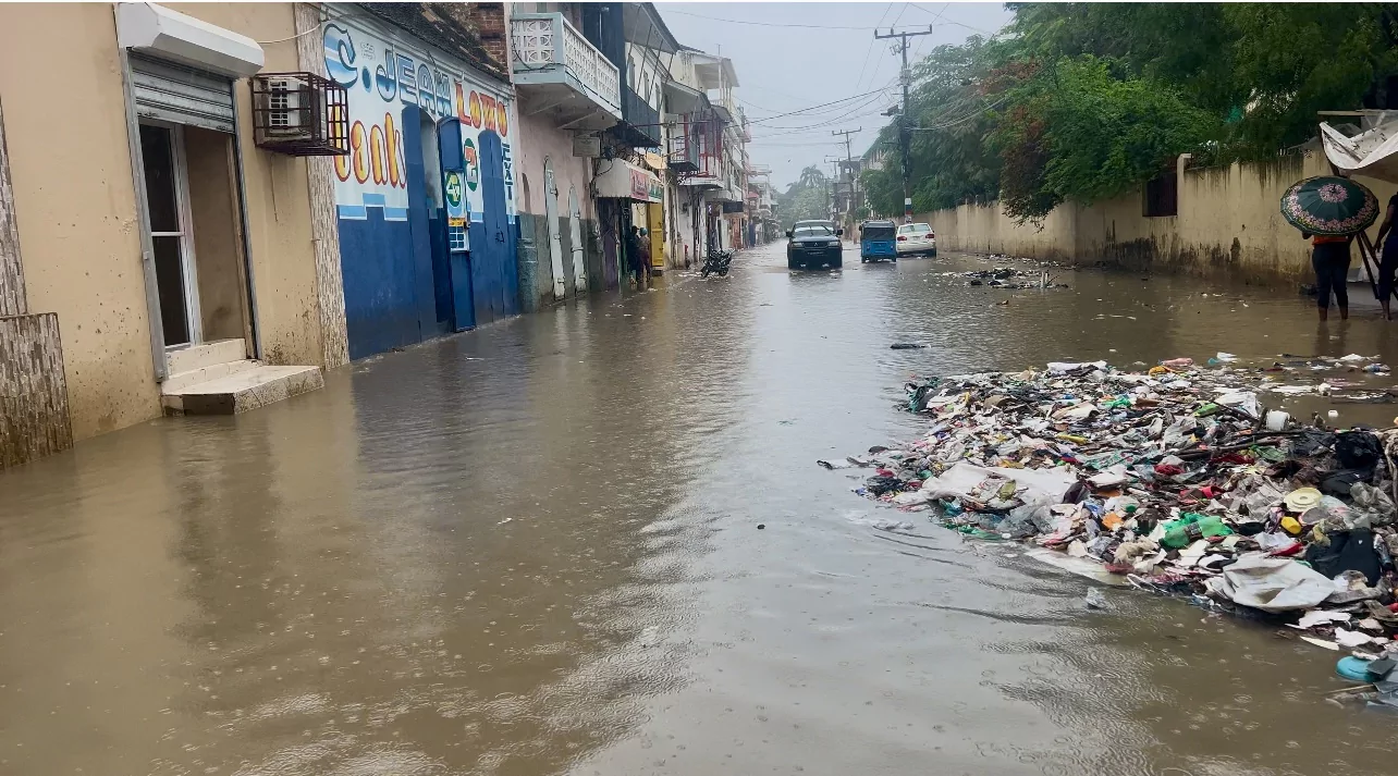 Las fuertes lluvias que arremeten al norte de Haití desde el martes han anegado a Cabo haitiano y varios municipios aledaños en una grave situación, en los que numerosos distritos, como Ba Zo-Vincent, Blue Hills y Cité Chauvel, están completamente inundados, mientras el centro de la ciudad está cubierto de barro, escombros y basura arrastrados desde las montañas, reporta el periódico Le Nouvellist.