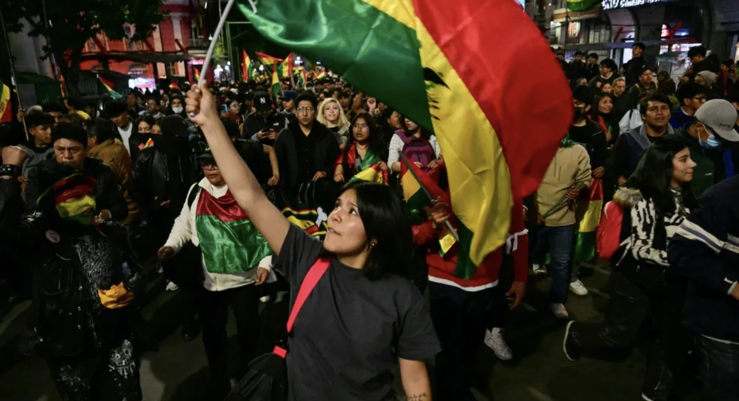 Con banderas bolivianas y al grito de "fraude", los manifestantes intentaron ingresar a la plaza de armas, donde se encuentra el palacio de gobierno y el congreso. La policía los dispersó sin que se reportaran incidentes.