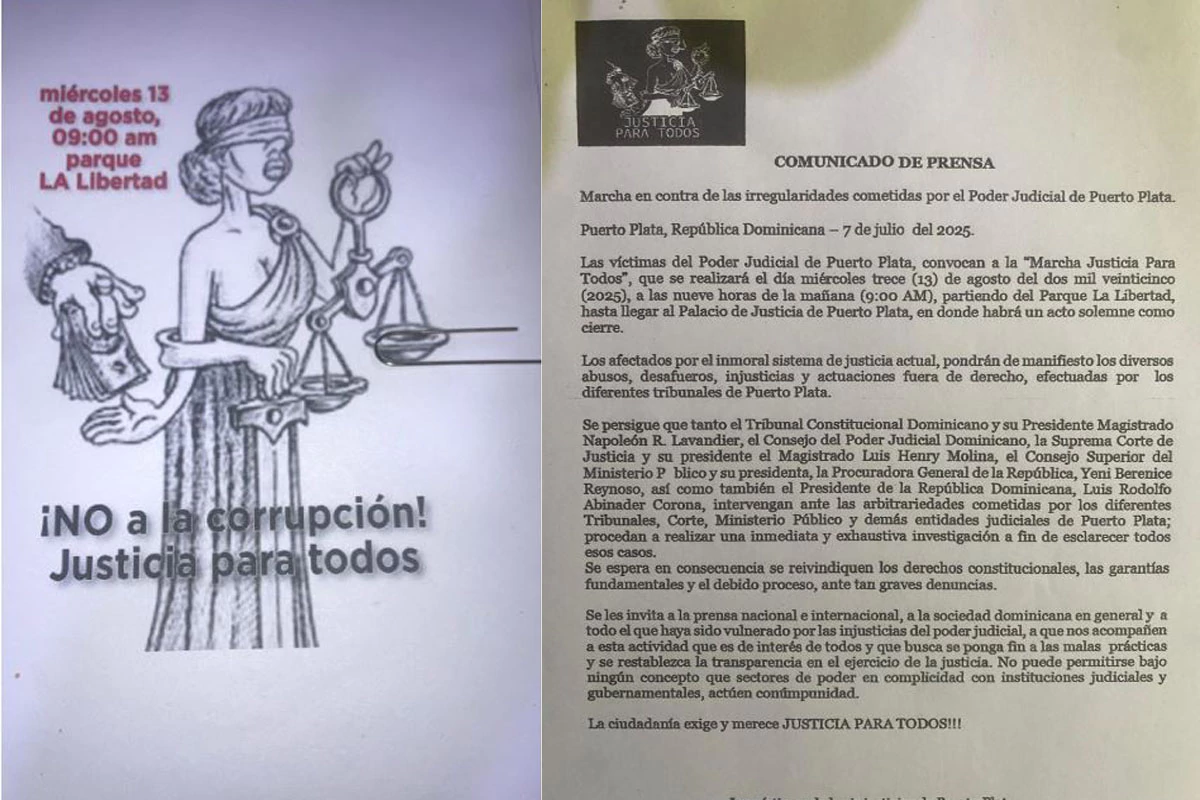 Organizaciones y diversos sectores marchan este miércoles 13 de agosto en Puerto Plata a partir de las 9:00 de la mañana en el Parque La Libertad contra lo que entienden que son irregularidades por el Poder Judicial en esa provincia.