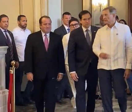 El secretario de Estado de los Estados Unidos, Marco Rubio, arribó al Palacio Nacional alrededor de las 11:40 de la mañana de este jueves, acompañado de una comitiva oficial encabezada por el canciller, Roberto Álvarez.