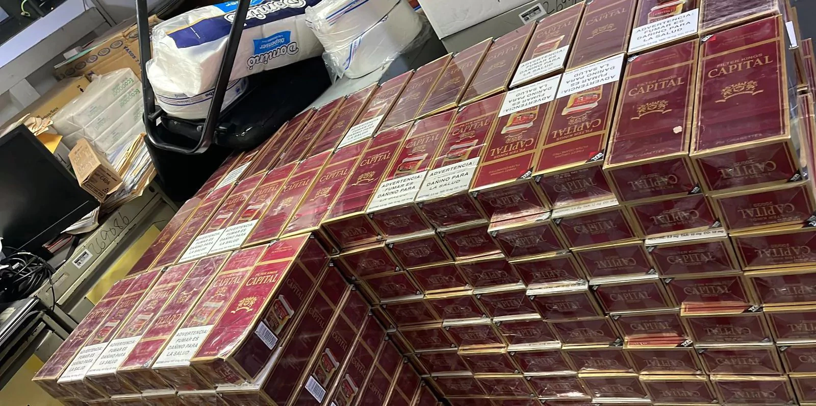 Fueron confiscado por la Policía Nacional más de 1,880 cajetillas de cigarrillos contrabandeados, equivalentes 376,200 unidades, luego de una persecución en la que se vieron involucrados dos vehículos.