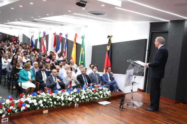 El lanzamiento se realizó en el auditorio Doctor Rodríguez Rib de la Universidad APEC, con la presencia de autoridades gubernamentales, representantes diplomáticos, rectores universitarios y beneficiarios de becas previas.