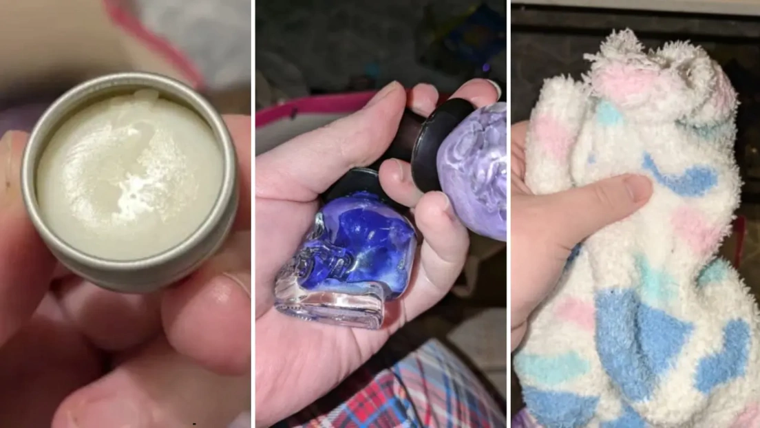 Entre los objetos incluidos en el paquete había chocolate caducado, cápsulas de café, un montón de esmalte de uñas viejo y sucio, calcetines que parecían usados y un pequeño tarro de bálsamo labial con huellas dactilares evidentes, lo que la hizo sentir extremadamente incómoda.